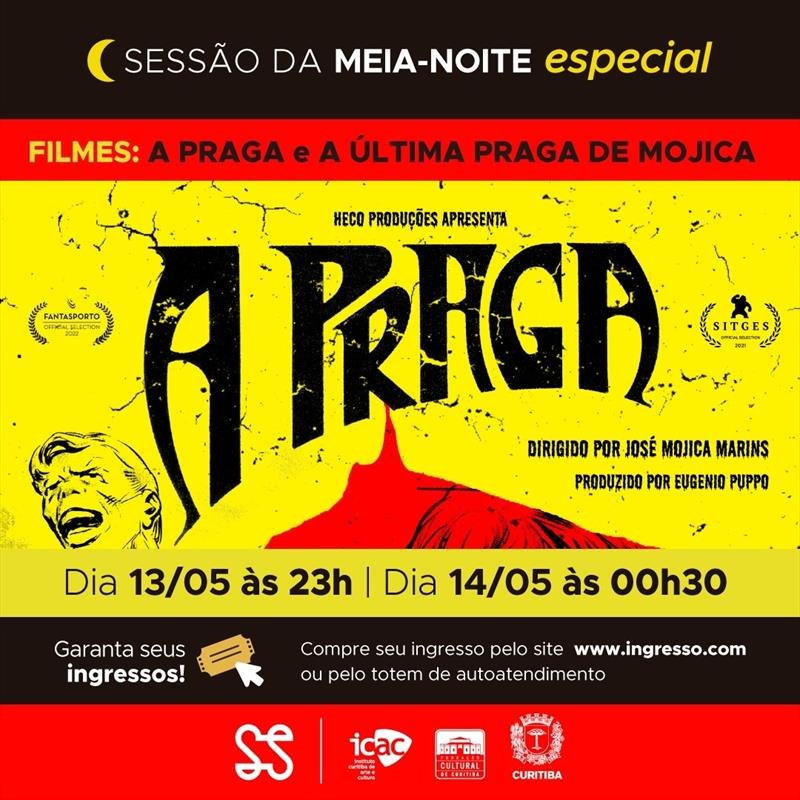 A sessão da Meia-Noite do Cine Passeio estará para lá de especial. Nesta sexta-feira (13/5), será exibido pela primeira vez e com exclusividade no cinema a cópia digital do filme A Praga, do mestre do horror brasileiro José Mojica Marins, conhecido como Zé do Caixão (1936-2020). Os ingressos estão à venda pelo site ingresso.com e na bilheteria do Cine Passeio.