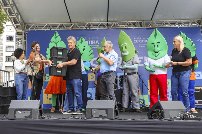 A educação ambiental deu o tom das atividades mensais do Domingo no Centro de fevereiro. Neste domingo (22/02), enquanto crianças e adultos participavam das brincadeiras e passavam por estandes de serviços e food trucks espalhados pelo Calçadão da Rua XV, mais 100 pessoas inscritas no programa de compostagem da Prefeitura puderam retirar os kits domésticos que aliviam a carga da coleta de lixo orgânico e servem também à produção de adubo natural. Com isso, passa de 2 mil o número de composteiras grátis entregues na cidade. Quem adere ao programa é chamado de agente de compostagem.
