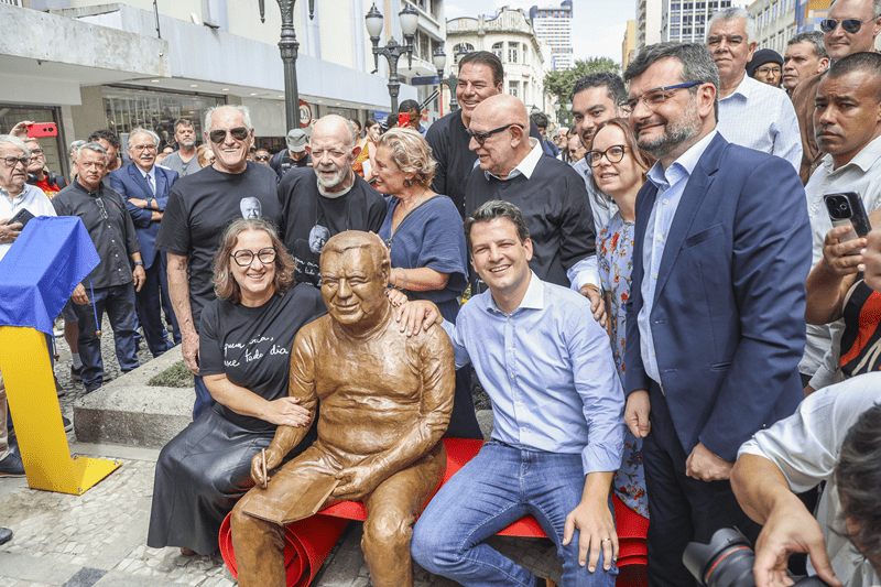 O prefeito também estimulou os curitibanos a interagir com a estátua. “Sentem ao lado do Jaime Lerner, tirem uma selfie, marquem Curitiba, usem a hashtag #JaimeLernerNaXV”, disse.