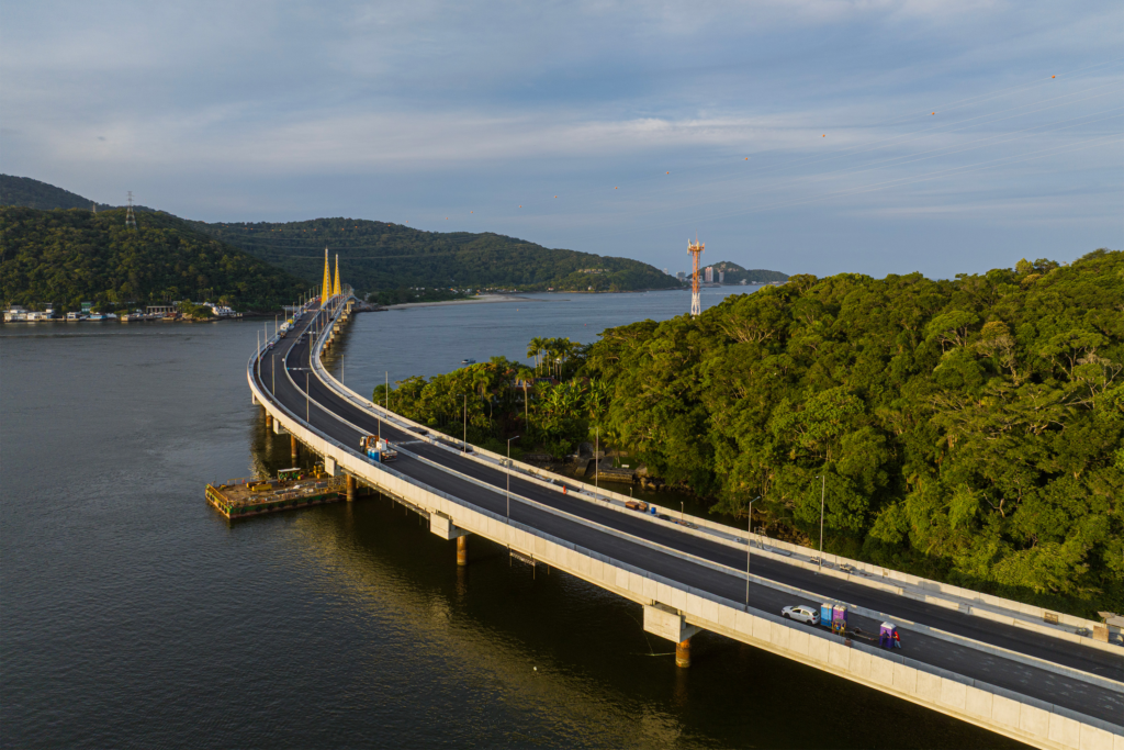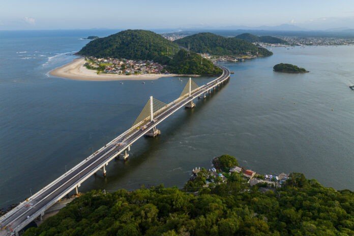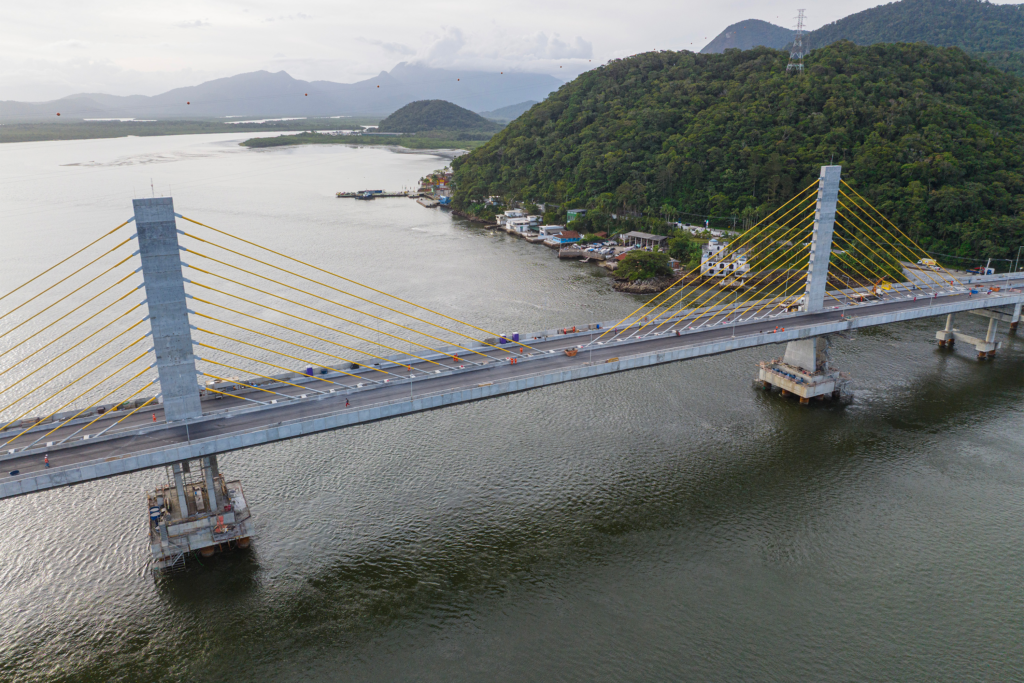 Com mais de 1,2 quilômetro de extensão sobre a baía e cerca de três quilômetros no total, a Ponte de Guaratuba terá quatro faixas de tráfego, ciclovia e áreas para pedestres.