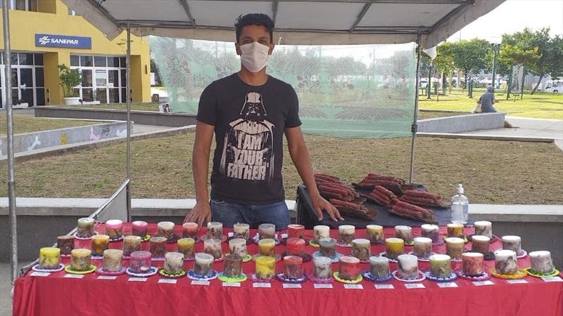 Quem também comemora o retorno é o Alex Farias, artesão de velas aromáticas e incensos naturais. Ele também está presente nas feiras do Cajuru e do Passeio Público.