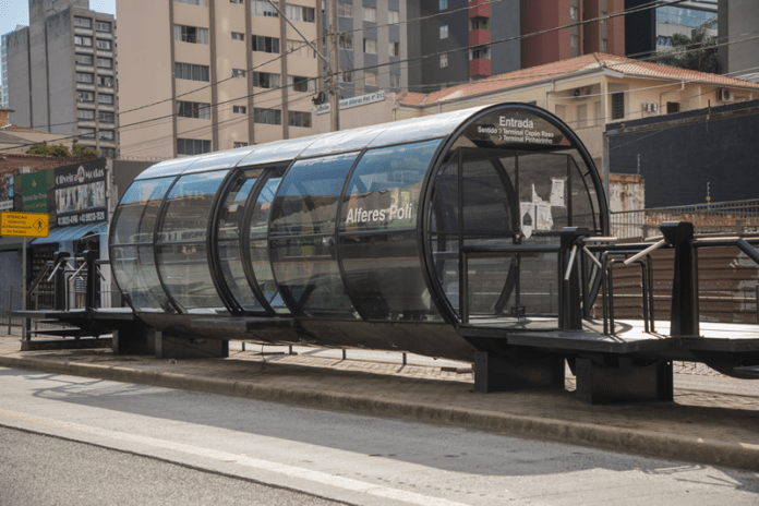 A estação-tubo Alferes Poli atende também a linha paradora 203 – Sta. Cândida/Capão Raso.