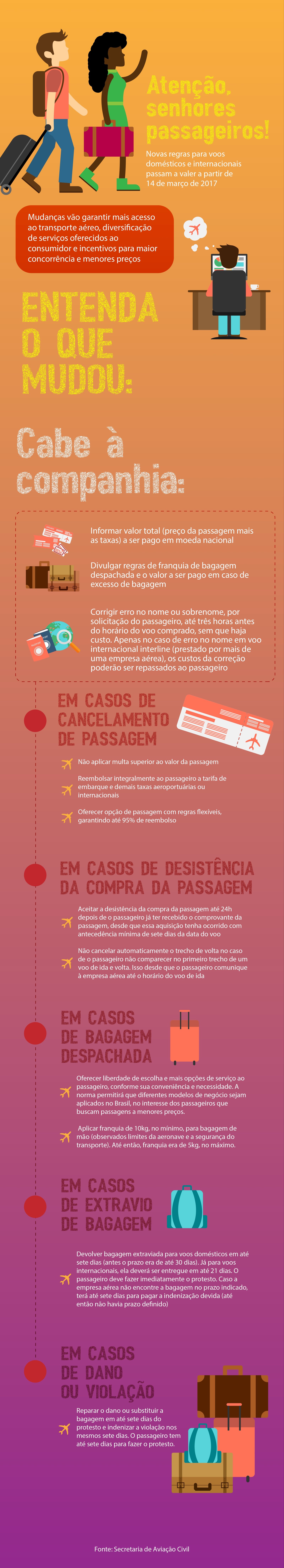 Segundo o secretário de Política Regulatória da Secretaria de Aviação Civil, Rogério Coimbra, o regulamento do setor é antigo, da época em que ainda não havia liberdade tarifária no setor aéreo brasileiro. Dessa forma, as mudanças nas regras para a franquia de bagagem têm como objetivo alinhar o regulamento do Brasil ao que acontece no resto do mundo.